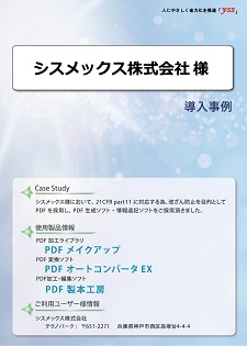 シスメックス様において、21CFR part11 に、対応する為、改ざん防止を目的としてPDFを採用し、PDF生成ソフト・情報追記ソフトをご採用頂きました。